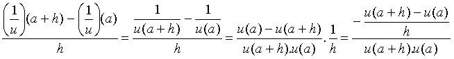L’existence de u’(a) et la non nullité de u(a) entraînent que le numérateur du membre de droite tend vers - u’(a), que son dénominateur tend vers [u(a)]2, également noté u2(a), donc que le quotient admet la limite |